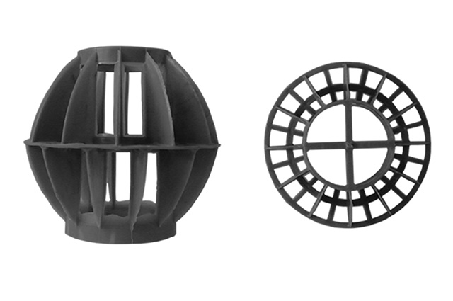 多面空心球中間鏤空結(jié)構(gòu)形成空隙大,不易被阻塞的特性。這種結(jié)構(gòu)在空氣洗滌、廢氣吸收、灰塵過濾等廢氣處理工程方面應(yīng)用,具有處理風(fēng)量大、阻力小的特點。由于多面空心球的空隙中有較高的滯液量,可使塔內(nèi)液體停留時間長,從而增加了氣體與液體的接觸面積和接觸時間。